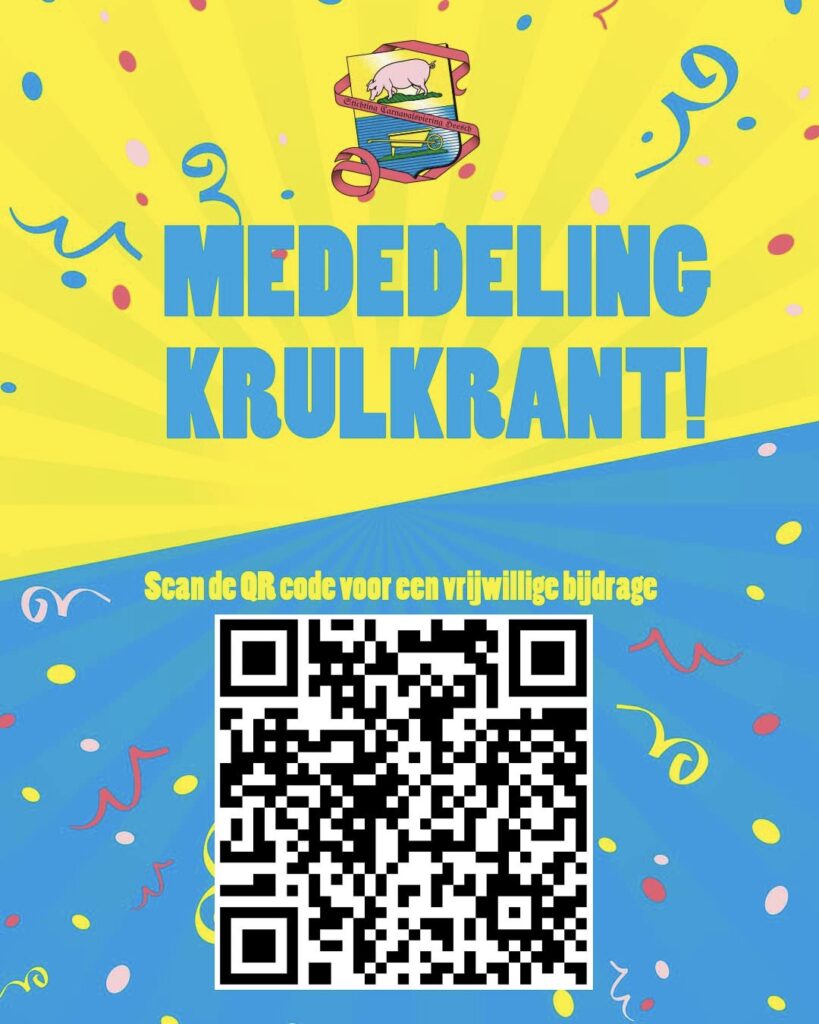 Wil je nog een vrijwillige bijdrage geven voor de Krulkrant? Scan onderstaande QR code en kies zelf je bedrag.